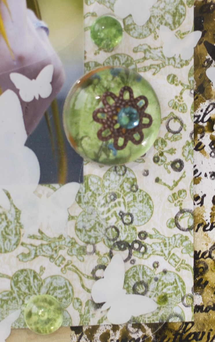I covered the chipboard heart from Blue Fern Studios with pink acrylic paint, then covered it with pearls, and after all added a thick layer of glossy accent.