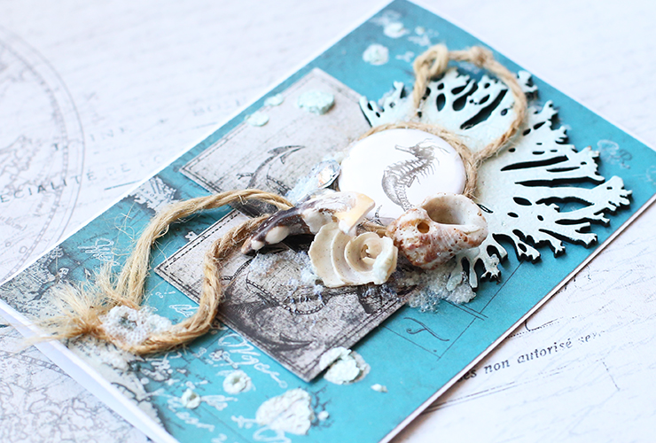 В самом конце я в произвольных местах добавила немного текстурной пасты со стеклянными шариками, чтобы подчеркнуть морскую тематику